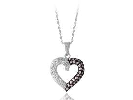 - Glitters and Gold - heart charm necklace with cubic zirconia and blue stones