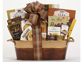 - Wine & Country Gift basket including Ghirardelli chocolate squares, Godiva chocolate truffles, baked crispy flat bread, hummus spread, and much more