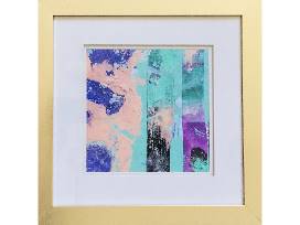 Framed 14"x14" acrylic collage print by local artist Theodora Miller.