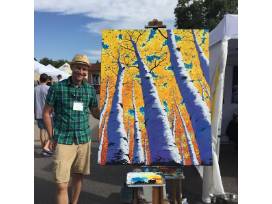Jesse Crock is a Golden, Colorado-based artist with a love of climbing, cycling, and the outdoors. The rich color and sharp contrast of his acrylic paintings attempt to capture the vibrant Colorado landscape of the places he travels. Jesse Crock is an Jeffco elementary art teacher who finds that he often connects his work with the playfulness of his students and is inspired by the energy they bring to the classroom. As an outdoor enthusiast, he brings the viewer's eye to places that are not often painted. Painting is 24" X 30"