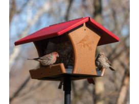 The EcoTough Classic has curved ends so you can see birds feeding on both sides at the same time. Perch drains allow seed to drop out of the feeder for ground-feeding birds to eat, and angled perches let empty seed hulls be blown away by the wind. The removable screen bottom is treated with EcoClean Antimicrobial Product Protection, providing 24/7 product protection.