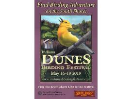 Original 2019 Indiana Dunes Birding Festival Fine Art Train Promotion Poster for the South Shore Line. 22 x 34 inches framed. Printed by NICTD South Shore Line for the 2019 IDBF.