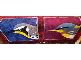 This beautiful wall hanging captures 4 warblers in detail. The finished peice comes with a wooden dowel for hanging.
