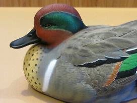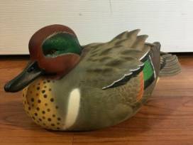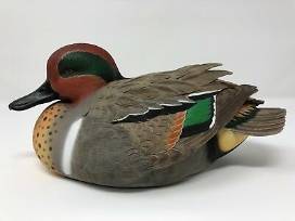 Ducks Unlimited Green-Winged Teal Duck Decoy of the year 2019 by Jett Brunet New In Box.Cast resin decoy from an original carving by world class carver Jett Brunet.This decoy is painted in exacting detail just beautifully.A Ducks Unlimited cloisonn'e style medallion is inlaid in the felt covered bottom of the decoy.Approximate size is; 10" x 6" x 5 1/5" representing a full size carving of the species. This is a strikingly beautiful rendition by Jett Brunet and are only available at Ducks Unlimited Events.