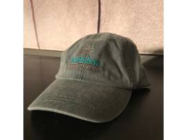Cool crown mesh liner baseball cap with leather sizing adjustment. Embroidered Audubon Great Lakes logo. Color Green Denim.