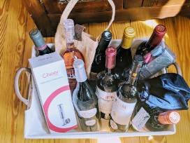 *Chardonnay *Pinot Grigios *Pinot Noirs *Bordeaux *Reds *Zinfandel *Cote's De Provence *Sauvignon Blanc *Electric Wine Opener *Wine Stoppers set *Metal and Canvas Basket Valued at $200!