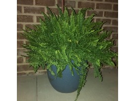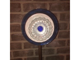 This fun glass garden flower is the perfect accent for this beautiful Boston fern and large blue pottery piece..... Or, you can always relocate the flower to a place you love more.