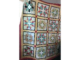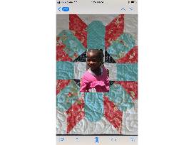 When the artist first decided to make a quilt for the Light of Hope Gala, she knew immediately that she wanted her work to be something that honored each and every girl. She has often said that she had never seen such big smiles and bright eyes. They twinkle like the stars in the heavens. That is why the artist decided to do a pattern of stars...each young girl, each young woman is truly a start of tomorrow. The quilt was lovingly made with each one of them in mind. Each "Star Block" is comprised of 65 individual pieces, with the smallest piece being a mere 1 1/16" X 1 1/16". That means that the star blocks alone contain 1040 pieces of fabric. Its dimensions will accommodate ANY bed from a double (hangs to the floor) to a California King.