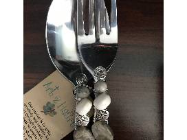 Decorative and contemporary spoon and fork set for salads, pasta, vegetables, meats and other culinary servings ($34.00); PLUS a gift certificate ($25.00) for Art 2 Heart Gift Shop and Gathering Place.