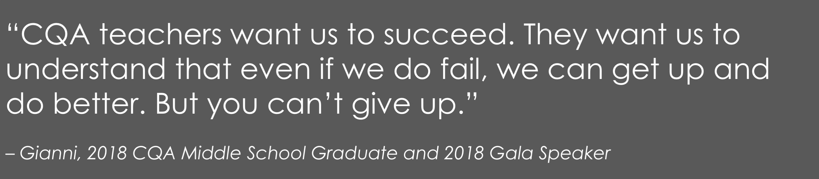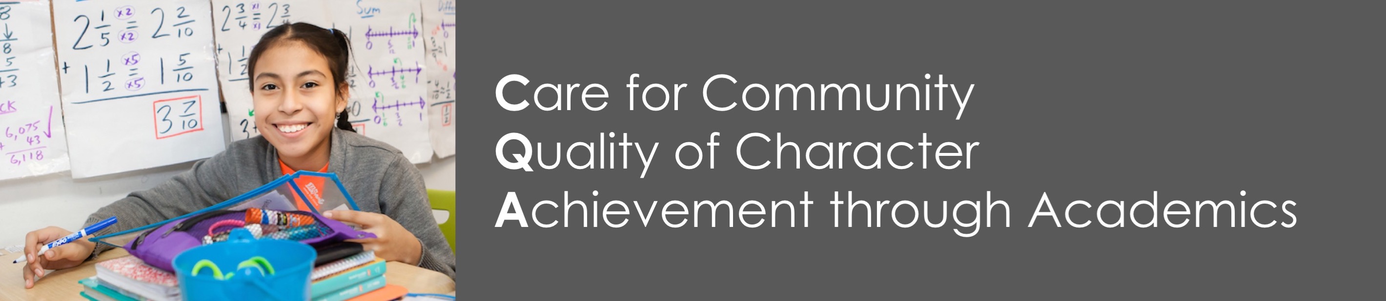 CQA's aims to prepare 100% of our scholars, 80% of whom would be first-generation college-going, for college success. We do this by combining a nurturing, enriched school culture with a rigorous, college preparatory academic program in a small school environment.