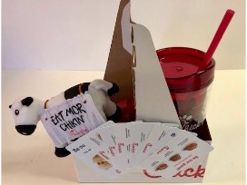 Includes a Subway $15 gift card, a Panera $50 gift card and Chick-fil-A gift card carrier which includes Chick-fil-A swag and eight gift cards for sandwiches. Perfect for people on the go.