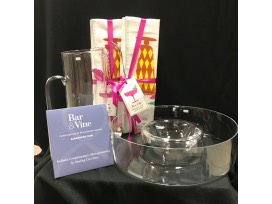 Impress your guests with this Sterling Cut Glass chip & dip bowl, pitcher, silver stirrers, and towels. (Monogramming certificate included)