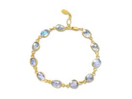 - Dreamy, ethereal rainbow moonstones are faceted and set into golden bezels