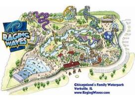 Located 45 minutes southwest of Chicago, Raging Waves caters to all ages and family members. Raging Waves has 20 water slides, a wave pool, multiple kiddie areas, private cabanas, and a quarter of a mile long lazy river.