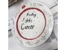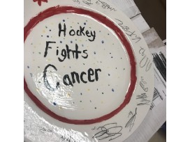 Hockey Fights Cancer plate signed by the Forwards and decorated by children at the Monroe Carell Jr. Children's Hospital at Vanderbilt