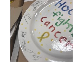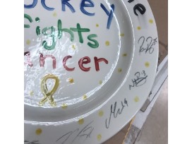 Hockey Fights Cancer plate signed by the leadership (Ekholm, Johansen, Subban, Bonino, Rinne, Forsberg, Josi, and Ellis) and decorated by children at the Monroe Carell Jr. Children's Hospital at Vanderbilt