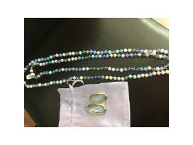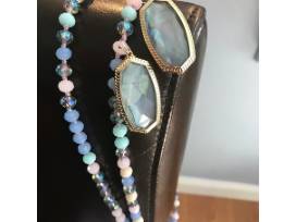 Wear these beautiful Kendra Scott-designer grey/gold earrings (1.5 ") and Multi-color (pale pink, blue, green, orange, sparkle) necklace, which can be worn as double strand (13.5") or single strand.