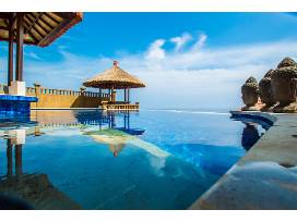 Bali Exquisite Luxury Boutique Resort in Amed, Bali has an infinity pool, outdoor pavilion, and bale massage. Every room has a view of the Indian Ocean.