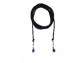 Handmade in West Hollywood using purple quartz gemstones, gold pyrite stones and genuine suede.