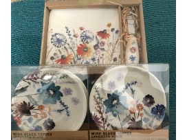 Red wine, 4 Wine Topper Appetizer Plates, 1 Cheese Board with Knife, 4 red wine glasses in different colors, plus $50 Gift Card for Urban Stead Cheese