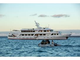 "So, you think you've traveled to some of the most extraordinary places in the world?Idid too .... until I visited the Galapagos Islands.Nothing can prepare you for all you will experience and its life-changing impact.This will be the journey of your lifetime with everyday being a magical, thrilling adventure. Hike the paths of ever-changing landscapes of Volcanic beauty, passing a lounging sea lion, dancing blue footed boobies, pink flamingos, giant tortoises, just to name a few. If you like to snorkel or dive you will discover the most spectacular, unique underwater marine life you've ever experienced. At one time you could be surrounded sea turtles, sea lions as playful as puppies, marine iguanas, and penguins darting about.... all at the same time. Ready to relax? Climb aboard the WildAid's Passion yacht and prepare to be catered to as you share the memories of the day with friends while sipping cocktails, enjoying extraordinary culinary food, and relishing in amazing sunsets. The Passion yacht has access to exclusive itineraries not generally available to everyone, along with the top guides in the region. You will have the best of the best! The Galapagos Islands will affect you deeply and are sure to make you realize you made one of the greatest decisions of your life buying this trip!!" -Victoria Fitzpatrick, WildAid Board of Directors
