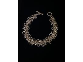 Hundreds of little silver tone rings comprise this pretty little bracelet. Bar clasp and bracelet is 7 1/4" long.