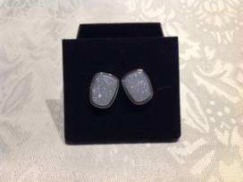 Sterling silver earrings set with Druzy Chrystal stones that sparkle with purple, yellow and green hues. Earrings measure 3/4" long and 5/8" wide. with sterling silver posts.