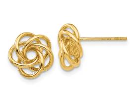 So sweet and meaningful, these charming stud earrings are perfect to remind her of your love. Crafted in 14-karat yellow gold, each stud features polished ribbons that twist into the iconic love knot design. A beautiful piece for that someone special, designed to be cherished for a lifetime.