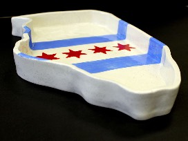 7"x11"x1.5" Illinois dish with Chicago flag created by Sean G. with Instructor Geryn.