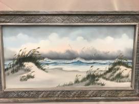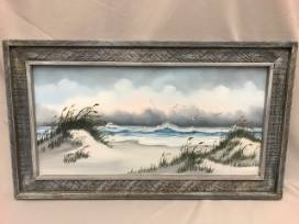 Gorgeous Beach Scene Oil Painting on Canvas. Framed in a nice wooden frame.