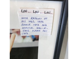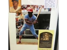 Lou Brock photo with reprint of his 1962 Topps Rookie card and Official Hall of Fame Plaque Post Card.