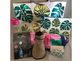 Beach Bag, Small Tote, Sun Hat, Water Bottle, Beach Towel, & $20 Clothes Line Boutique Gift Card.
