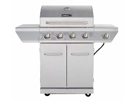Enjoy this amazing 4 Burner Propane Gas Grill in Stainless Steel with a Side Burner. Also included is a 65 inch premium grill cover and 8 piece stainless steel tool set.