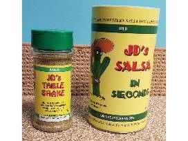 Receive 1 large can of JD's Salsa in Seconds and 1 spice container size of JD's Table Shake. Both are MILD in flavor.