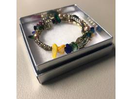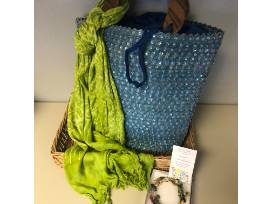 This item has some fun summer accessories including a women's handbag, scarf, and a bracelet from Fun and Funky!