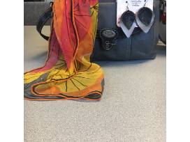 This item includes a purse and some handmade, faux leather earrings from Sweet Leather Creations.