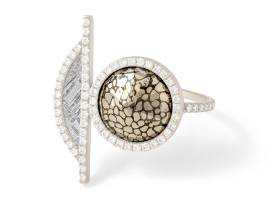 Rare opportunity to create a MONIQUE PÉAN ring or writing instrument during a custom design session with the artist and designer at her studio in New York City. Select a unique piece of fossilized dinosaur bone or meteorite (ranging in age from 146 million to 4.6 billion years old), as well as your choice of white or champagne conflict- and devastation-free diamonds set in 18-carat recycled white, yellow or rose gold. Your unique design will be accompanied by a custom hand drawn watercolor sketch, signed and dated by the designer.