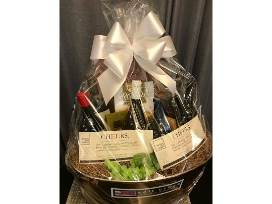 6 bottles of premium wine : Neyers , Quest Tre Leoni , Treana Collusion, Kinder Brick . Plus Wine Education Class Gift Certificates , Govina Chocolate Truffles, Smoked Gouda, Glass Wine Serving Tray, Metal Tub - Thank you Salk Creek Wine Company