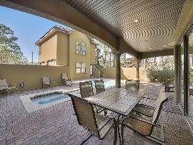 Enjoy a week in this gorgeous home in Destin Florida. Six bedrooms, four baths sleeps 14 to 16 people. Professionally decorated with custom finishes! This one of a kind home features granite countertops, travertine floors, stainless appliances, copper sinks, private courtyard, heated pool and Jacuzzi. Also, a luxury guest house with separate living area with kitchen and bath. A five minute casual walk from front door to the gulf!