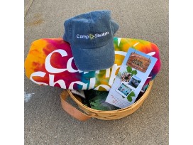 Camp Shalom basket -blanket, camp and water bottle and any camp