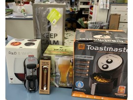Enjoy this toastmaster air fryer, Pilsner & Wine glasses, wine opener, bottle opener.. Collect all your corks with a Keep calm cork saver.
