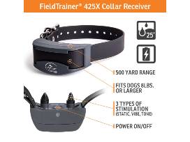 The SportDOG Brand FieldTrainer 425X is our smallest and lightest e-collar built for in-the-field training or hunting with close working dogs. Consistency and perfect timing are critical to developing your sporting dog, so the remote is quickly and easily operated without having to look at it - which lets you focus on your dog and not your equipment. With only a slight movement of the dial and the push of a button, you will be able to deliver a tone, vibration, or one of the 21 levels of static stimulation. Use these stimulation types to communicate with up to 3 dogs (with purchase of Add-A-Dog collars) out to 500 yards with any of the 425 models.