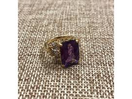 African Amethyst 6.56ct Ring, 10k yellow gold, 0.04 ctw diamond