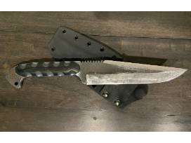 - SH9 Edge Works Fighter, 1/4" 1095 steel, black G10 handles with blue liner, black kydex sheath with horizontal belt loop
