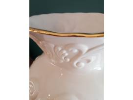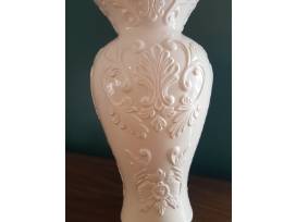 Rich in tradition, this vintage ivory porcelain Lenox Georgian vase is trimmed in 24K gold and over-sized for a dramatic display of fresh, dried or silk floral arrangements. 16.5 inches tall.