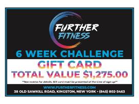 Get fit with this Six Week Challenge Gift Certificate to Kingston's Further Fitness. You will receive fitness coaching four times per week, with nutrition and accountability.