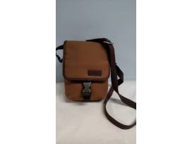- a travel shoulder bag. Fully lined, with zippered rear organizer compartment, exterior front pocket and hidden zip pocket on flap, adjustable webbing shoulder strap