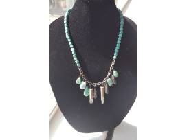 One of a kind handcrafted charm necklace! Turquoise and quartz provide a warmth to this piece that will uplift your spirits and brighten your wardrobe!