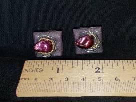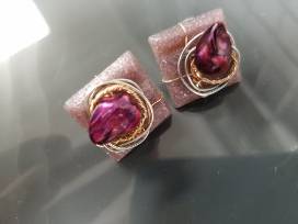 Beautiful grape tile stud earrings wire wrapped in silver with a wine colored pearl in the center.