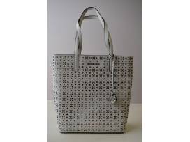 Michael Kors floral laser-cut saffiano leather tote bag. White/Silver